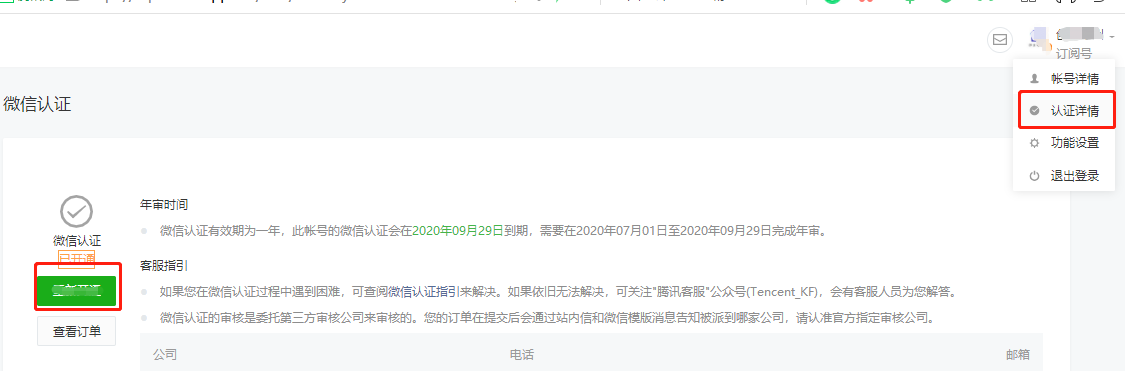 可點(diǎn)擊微信公眾平臺右上角 認(rèn)證詳情繼續(xù)公眾號認(rèn)證(認(rèn)證未成功前不能獲取公眾號的二維碼,注?。〈颂庍^程中需要下載微信認(rèn)證申請公函,需要蓋公章,如單位公司里面申請使用公章過程復(fù)雜,請?zhí)崆皽?zhǔn)備好公章)