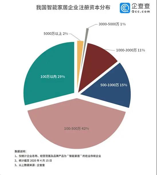 智能家居如此龐大的市場需求和商業(yè)布局,迄今為止整個(gè)市場還沒有一家能夠形成較大的規(guī)模。從注冊(cè)資本上看,涉足智能家居的企業(yè)大部分注冊(cè)資金在500萬以下,注冊(cè)資金在5000萬以上的企業(yè)僅為2%。