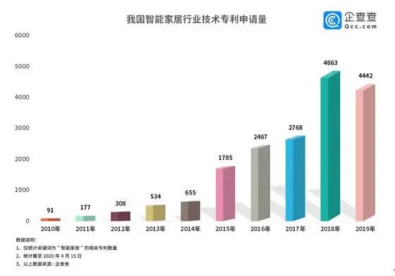 潛力巨大的“藍(lán)海”市場早已廠商云集,智能家居行業(yè)技術(shù)專利申請(qǐng)量迅速攀升。企查查數(shù)據(jù)顯示,我國智能家居相關(guān)專利申請(qǐng)總量早已破萬,2015年開始我國智能家居行業(yè)技術(shù)邁入快速發(fā)展期,2018年達(dá)到巔峰,數(shù)量達(dá)4863件,較2017年同比增長了76%,2019年專利申請(qǐng)數(shù)稍減。由此可見,智能家居市場競爭較為激烈,各路玩家步伐急促。